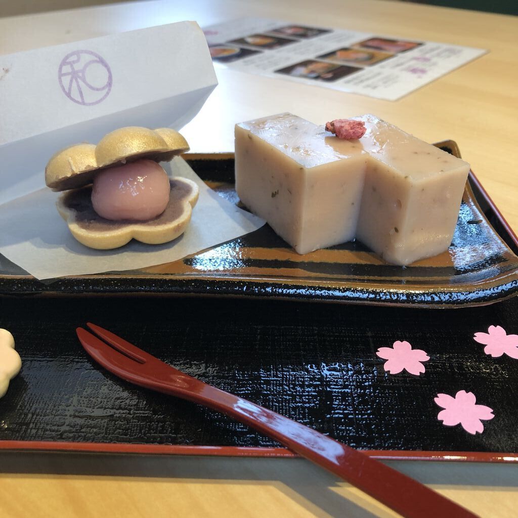 今日は甘味処和と輪さんへ雨の中お邪魔しました〜♪(実は2回目)1回目は和風ハンバーグセットを頂きました(´˘`*)和と輪セットのミニとピンクの可愛らしい和菓子を頂きましたよ!ルリちゃんの焼き器が運ばれてきてそこの上で焼いて食べるスタイルで40分間の時間内であればなんどでもおかわりができます♪お餅は小さく切り分けられてる為お子様で食べやすいと思います食べ方は自由なのでコンロで焦げ目をつけて雑煮の中に入れたり付属のトッピングで食べたりととても楽しく食べられましたデザートに頼んだ和菓子も今の時期にピッタリなスイーツで甘さひかえめな所が気に入りました〜♪
