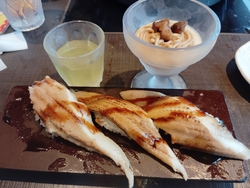 今日は、足利市 ゆず庵足利店さんに来ました。今日は、食べ放題コースで、奮発をして、一番高い、贅沢コースを注文しました。黒毛和牛に、期間限定の牛タンを注文。何枚食べても、食べ放題なので、同じ値段。なので、黒毛和牛を全部で、15枚に、牛タンを8枚ほどを頼みました。ゆず庵さんの美味しい高知産のゆずを使用したポン酢をつけて食べました。もみじおろしも、注文しました。お寿司も上寿司の中から、カニのお寿司、マグロの中トロ、炙り穴子寿司、北海道産ホタテ、イクラ軍艦、期間限定のサーモンづくしを食べました。全てが、美味しい。デザートも美味しいプリンに、杏仁豆腐、モンブランプリン、ゆずゼリー、梨のシャーベットを食べました。食べ放題の良いところは、値段は、決まっているので、お金を気にせず、食べたいのを食べられる幸せを感じます。ざっくり、計算をしましたが、単品注文した場合より、約2倍ぐらい、食べました。始めて、黒毛和牛をお腹、いっぱい食べられた幸せです。ごちそうでした。
