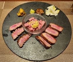 本日(2025年10月10日)ユニオン通りにオープンした牛タンのお店に初訪問です。インターパークの「たんや練」の系列店。終業後に事前電話予約して訪問しました。注文は「牛たん三種盛り 2,600円」「切り落とし串 600円」「トロたんのタタキ 1,600円」「ウーロンハイ 700円×3」「浦霞1合 1,200円」分厚いのに柔らかくて肉々しい極みに甘みのあるトロたんと全て美味しかった。