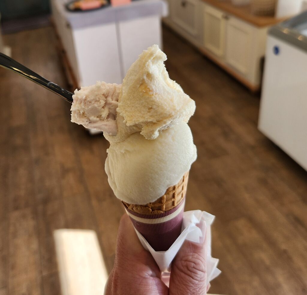 yamachan父さん 宇都宮市 総合レベル132 ファン85 クチコミ Dolce Miele 鹿沼市/ジェラート・アイス 170 81 友人達と鹿沼で昼食を食べたのでデザート目的でこちらに訪問しました。人気ありますね。平日なのに隣のレストランは順番待ちになってます。注文は私が「ワッフルコーン タブル 550円」。友人達が「カップ トリプル 600円」。バナナミルクキャラメルと洋梨にしました。濃厚な味で美味しかったです。味見もピスタチオとブルーベリークリームチーズの両方させていただきました。 訪問日:2025.11.10 "ぐッ"ときた! 18人 yamachan父さんのクチコミ一覧に戻る