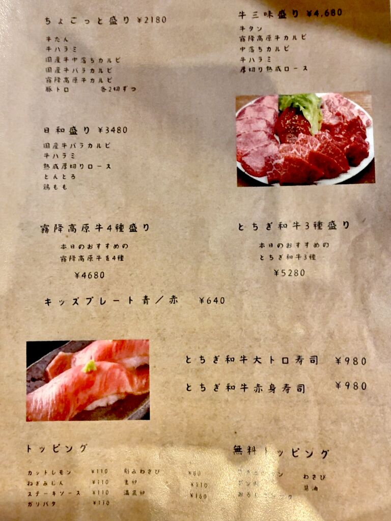 maroronさん 宇都宮市 総合レベル138 ファン202 クチコミ 炭火七輪焼肉 日和 宇都宮市/焼肉 3 2 ディナーで利用しました。国産牛バラカルビ,ハラミ,熟成厚切りロース,とんとろ,鶏ももがのった「日和盛り(¥3480)」を注文、肉がとても柔らかく美味しかったです。一緒に頼んだアボカドのナムルは、アボカドとごま油がよく合い、アボカド好きにオススメの美味しいナムルでした。 訪問日:2026.04.05 "ぐッ"ときた! 38人 maroronさんのクチコミ一覧に戻る