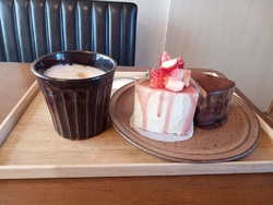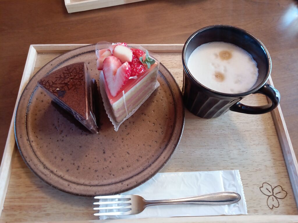 インスタグラムで見つけてから、ずっと行きたいと思っていた「洋菓子喫茶シロツメ」さんに行ってきました。駐車場では猫ちゃんたちがお出迎えしてくれました♬店内もステキで落ち着くスペースでした。 見た目が華やかで美味しそうな季節のショートケーキとチョコレートピーナッツバターのケーキとカフェラテを注文したところで、焼き立てのアップルパイが登場し、、、美味しそうなんです!店主さんも見た目は地味ですが、一番のオススメですと紹介してくれ。もちろん、注文です(笑)見た目だけでなくケーキもとっても美味しかったんですが、オススメのアップルパイがとても美味しすぎて(>ω<)今まで食べたパイ生地の中で1番に美味しかったんです☆彡アップルパイの虜になってしまいました。また、食べたい。そして…今度は子供たちにも食べさせあげたいと思ってます。