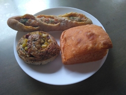 久し振りのオリーブ(o゜▽゜)o☆ 12:00を10分くらい回った頃、到着しましたが、駐車場は満車で、道路脇にも何台か停まってる(*Φ皿Φ*) 自転車の方もいて、激混みΣ( ̄ロ ̄lll) どぅしようかと思いましたが、ハザードを焚いて待つことに◉_◉ 20分くらい待って、ようやく空きが出ましたOwO そして、ようやく列に並ぶこと25分。やっと順番が回って来て、お目当ての品が残ってるかなぁ... あった!!! 「黄ゆずコショウのベーコンチーズ」赤唐辛子が入った黄色の完熟ゆずコショウのベーコンチーズ。ゆずの香りとピリッとした辛さがアクセントのハードパンで、モチっとした生地で、噛めば噛むほどイイ味が出て、ウマい☆*: .。. o(≧▽≦)o .。.:*☆ 「さつま芋ロール」黒ゴマと白ゴマ入りの生地に相性バツグンなコロコロさつま芋を巻き込み、しょうゆとゴマの香ばしさを感じる、秋ならではのパンデス(❤️´艸`❤️) 「ルヴァン酵母のモチモチトマトフォカッチャ」は、水を使わず、トマトジュースで仕込んだ生地で、弾力があり、モチモチとしています(●ˇ∀ˇ●) 「きまぐれデリ(惣菜)パン」も、気になっていましたが、SOLD OUTのようでしたねщ(ʘ╻ʘ)щ 現在、土曜日のみの営業となっており、よりお客さんが集中するようデス(((o(*゜▽゜*)o))) 取り置きも可能なので、お目当てのパンがある方には、オススメします(⋈◍>◡<◍)。✧♡