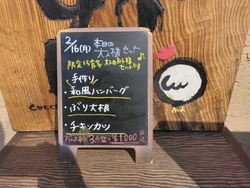 開店7分前に到着(o゜▽゜)o☆ ウェイティングボードがあり、名前を記入して待つスタイルでしたぁ(●ˇ∀ˇ●) 「限定15食 本日の大人様セット×2」を注文出来ましたぁ☆*: .。. o(≧▽≦)o .。.:*☆ 「手作りハンバーグ」「ぶり大根」「チキンカツ」のちょっとずつ3点盛りヾ(≧▽≦*)o マカロニサラダもついて、嬉しいぞ(⋈◍>◡<◍)。✧♡ ゴハンは、白米か五穀米か選べて、「小」「中」「大」と、量も選べます°˖✧◝(⁰▿⁰)◜✧˖° 中にしたけれど、多かったので、小でも充分だったなぁ...(*Φ皿Φ*) お冷と、お茶はセルフでしたぁ,,ԾㅂԾ,, 帰り際にも、待ちのお客さんもいて、大盛況щ(ʘ╻ʘ)щ 店員さんたちも、みなさん明るく、活気があります(๑•̀ㅂ•́)و✧ 入口には、ブランケットも用意されており、お借りして、暖かく、お食事が出来ました(((o(*゜▽゜*)o)))