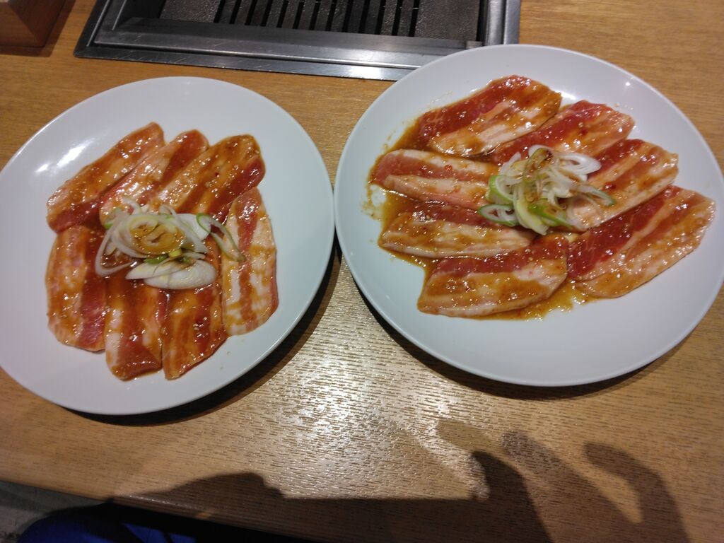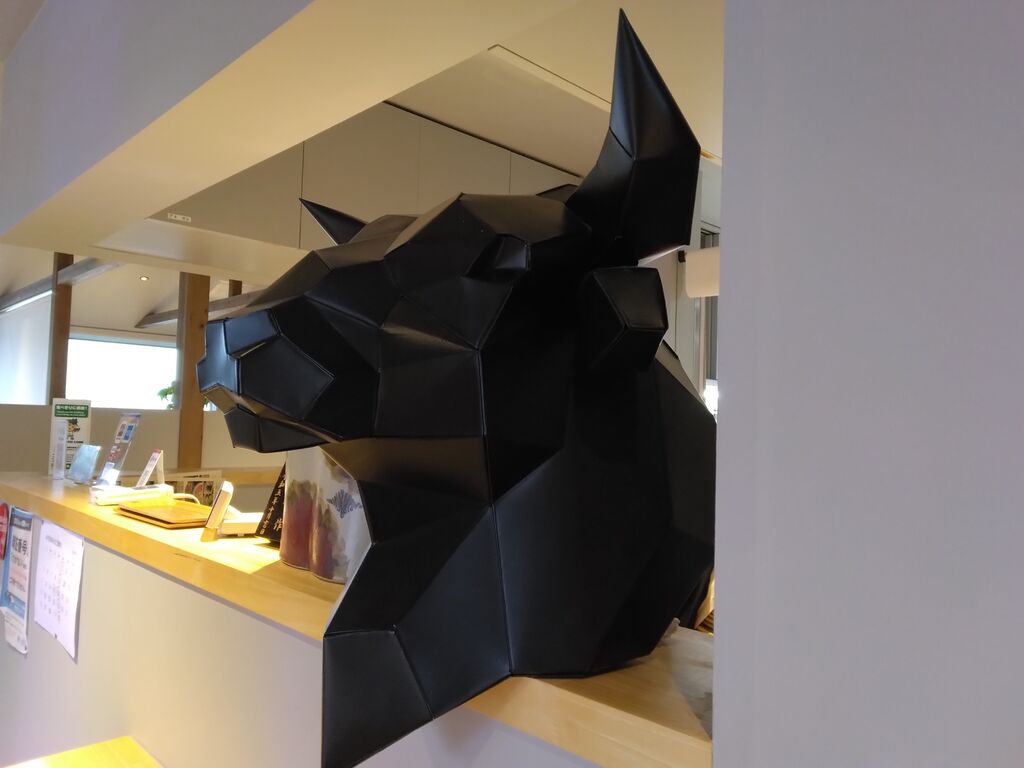 「豚カルビランチ」×2、「サラダ」、「ウーロン茶」・「ホットコーヒー」を注文(o゜▽゜)o☆ ドシャ降りだったので、店内も空いていて、落ち着いて食事がとれました(((o(*゜▽゜*)o))) 店員さんがパトロール中、「網、交換しますか!!?」と言って、焦げ付いた網の交換をして下さいました°˖✧◝(⁰▿⁰)◜✧˖° 桜山豚のお肉と、タレがめっちゃ相性良くて旨い(๑•̀ㅂ•́)و✧「キムチ」や「スープ」の脇役も最高ヾ(≧▽≦*)o テーブル席の他、小上がりの席もあり、非常にモダンな造り◉_◉ 会計時、いつも気になっていた黒い牛さんの許可をいただき、写真を撮らせていただきました(●ˇ∀ˇ●) ブリキで出来ているそうデス,,ԾㅂԾ,,