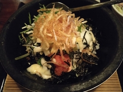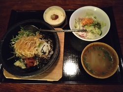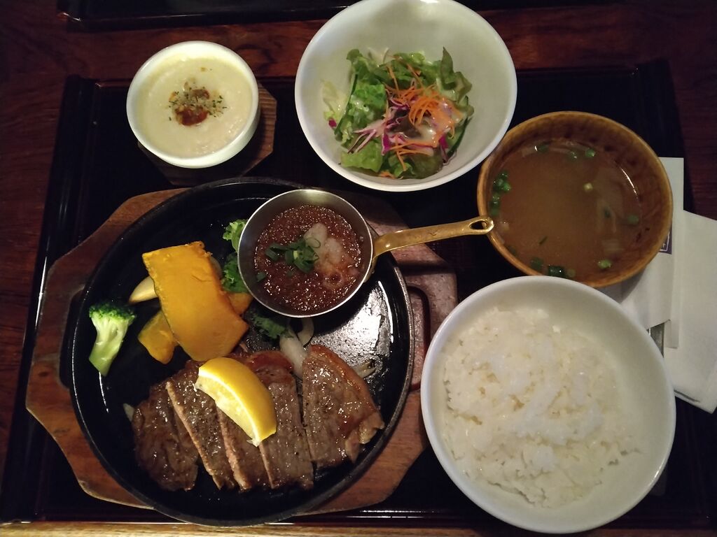 10年振りくらいに、草木万里野へ、いざ出陣ヾ(≧▽≦*)o 7種類あるランチメニューから、お肉のランチ「アンガス牛のサーロイン 100g(和風おろしソース)」・石焼きご飯セット「明太子とチーズ」(温玉添え)を注文(*Φ皿Φ*) マンゴー酢ドリンクとホットウーロン茶も併せて、注文しました(o゜▽゜)o☆ 普段、牛はあまり食べないので、ちょっと贅沢しちゃいました,,ԾㅂԾ,, セットのグラタンも脇役なのでしょうが、美味しかったな(●ˇ∀ˇ●) そして、珍しい“マンゴー酢ドリンク”も、一口、いただきましたが、さっぱりとしたジュースで、食事のいいアクセントになる感じでしたね°˖✧◝(⁰▿⁰)◜✧˖° 個室なのは、やっぱり人気店の共通点ですねo(*////▽////*)q