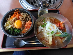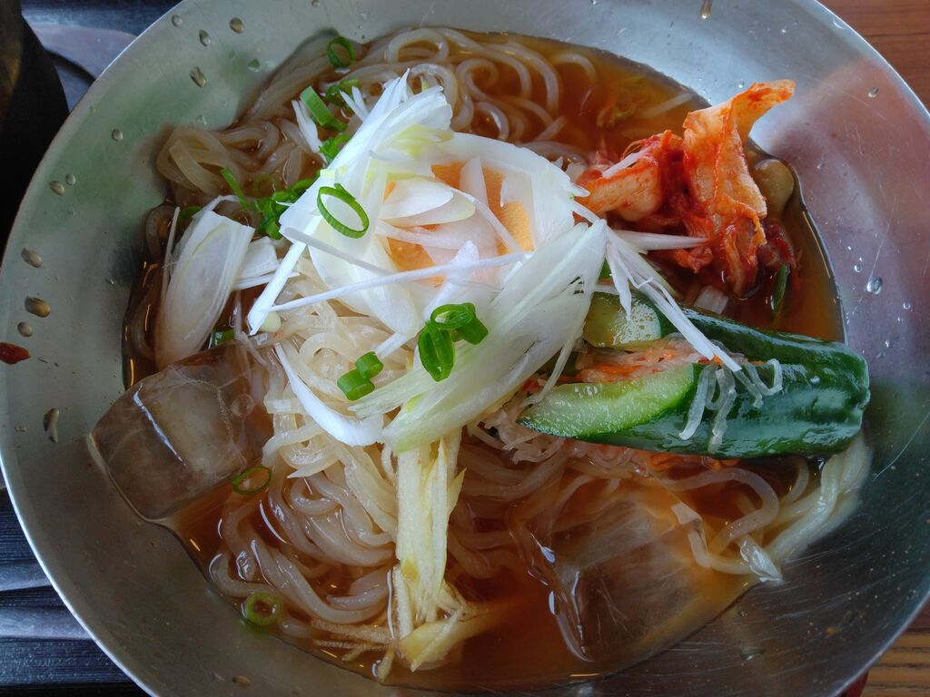 「冷麺とミニ石焼ビビンバ」×2を注文(*Φ皿Φ*) 前回は、「ミニ冷麺と石焼ビビンバ」を注文したのですが、冷麺がとっても美味しかったのと、今日は気温が高かったので、“冷麺”メインで注文しました(o゜▽゜)o☆ そのままでも美味しかったのですが、“お酢”&“辛みそ”&“ゆずだれ”をINすると、さらに美味しくなって、食欲マシマシに°˖✧◝(⁰▿⁰)◜✧˖° 14:00過ぎに伺ったのですが、ランチのラストオーダーは、嬉しい「15:00」デスヾ(≧▽≦*)o 冷たい“冷麺”と、あつあつの“石焼ビビンバ”は、ダブルで最高☆*: .。. o(≧▽≦)o .。.:*☆