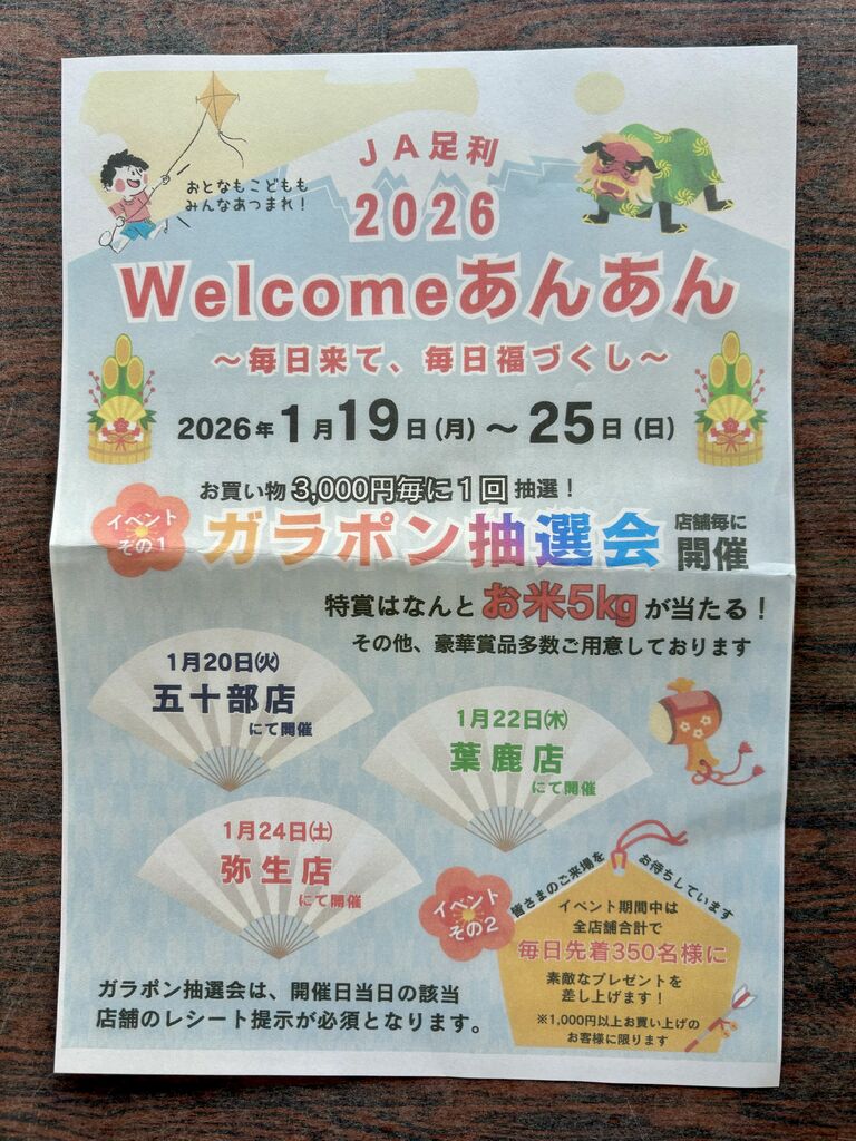 とっちーなさん 足利市 総合レベル71 ファン30 クチコミ JA足利農産物直売所 あんあん弥生 足利市/野菜・直売所 47 3 冷蔵庫の野菜がなくなってきたので、万能選手を少しずつ選んできました。今は苺や夏みかん、里芋に八つ頭も並んでいました。19〜25日にはガラポン抽選会があるようです。 訪問日:2026.01.17 "ぐッ"ときた! 25人 とっちーなさんのクチコミ一覧に戻る