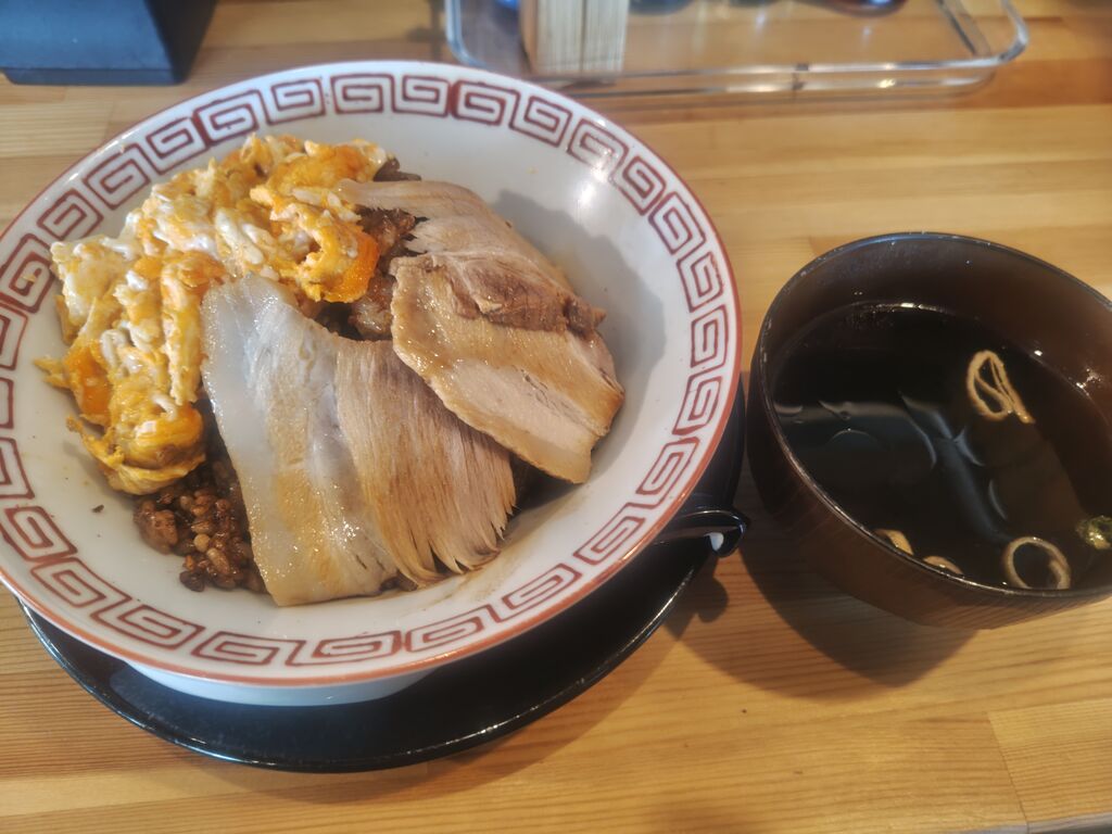 平日の13:30頃と言うこともあり、一人でした。餃子を食べに行ったが新メニューの「肉玉黒炒飯」が気になり注文。苦手なネギ抜きも大丈夫でした。ミニラーメンの丼に来たから、量的にはかなりあります。1280円は高めと思ったが納得。自慢の黒炒飯はたまり醤油が効いていて、絶妙な味、タレ玉焼きもフワフワで美味しい。意見は別れるかもだが同時に食べると各々の良さが消えるから私は黒炒飯、タレ玉焼きは各々単独で食べました。バラ焼豚はもう一切れ欲しいです。餃子は食べることなく、お腹は満たされました。