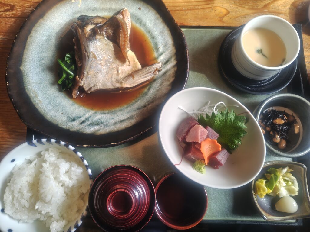 誕生月30%オフメールが届いたので今日はめちゃ豪勢にと来店。注文時その話をしたら前日までの予約必須でその予約時に「誕生月サービス利用」と伝えないと15%OFFとのこと…メールを見返すと確かに記載あり、予約はしたが誕生月クーポンの話はしていなかったので、素直に諦めました。注文したのは『まぐろぶつと煮魚定食』1780円、旬香さんには何回か来ているが他の人が注文した声を聞いていない一品にチャレンジ。いやー美味しかったです。一品ではなく、逸品。多少煮魚の骨を取る手間がありますが蕩ける感がありました。アップ写真はカマを裏返したものです。茶碗蒸し始め、小鉢も栄誉バランス良いと感じました。誕生月クーポン未使用だから今度はしっかり予約時に告げ再訪します。