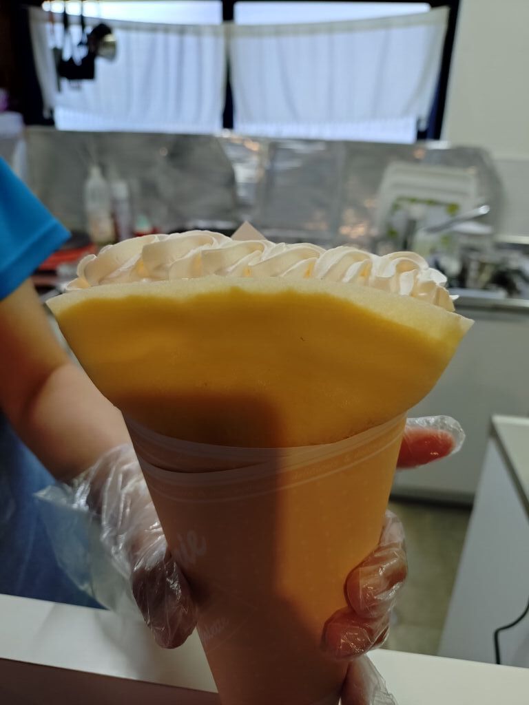 またまた、リベルテにて、甘くて、美味しい創作クレープをいただきました。今回は、いただいた美味しい創作クレープについて、お話をしたいと思います。いただいた美味しい創作クレープは、写真に掲載しました通り、カスタードクリーム&ホイップクリーム2倍のクレープです。ホイップクリーム2倍にカスタードクリームが加わりましたので、フレッシュ&濃厚な甘さのクレープに仕上がりました。単純にクリームだけのクレープとは言え、ボリューム感と食べごたえは十分なクレープです。皆さんも、是非、食べてみてください。今回も読んでいただき、誠にありがとうございました。