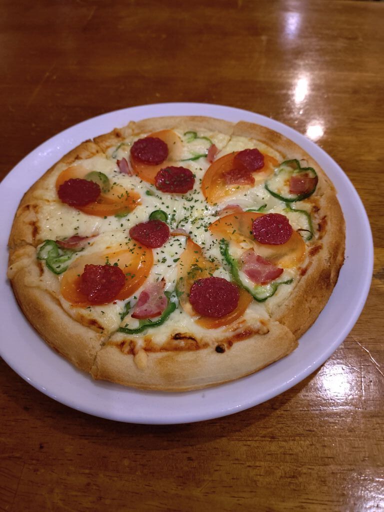 仕事帰りに、ヒノマチ食堂にて、美味しいメニューをいただきました。今回は、いただいた美味しいメニューについて、お話をしたいと思います。いただいた美味しいメニューは、写真に掲載しました通り、ピザ19cmとはちみつホイップトーストです。いずれも、ホームメイドなお料理で、とても美味しいメニューです。ピザは、生地から全て手作りで、具の豊富さと美味しさ、生地の食感等全て、エクセレントです。はちみつホイップトーストは、トーストにホイップクリームとはちみつをトッピングした甘く、美味しいメニューです。ここでしかいただくことができません!アイスミルクやホットミルクとの相性もバッチリです。真心と愛情がこもった美味しいメニューばかりです。皆さんも、是非、食べてみてください。今回も読んでいただき、誠にありがとうございました。