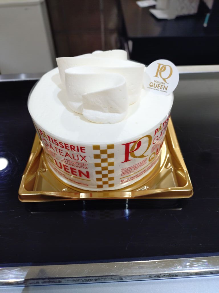 久しぶりに、クィーン洋菓子店のケーキをいただきました。今回は、いただいたケーキについて、お話をしたいと思います。いただいたクィーンのケーキは、写真に掲載しました通り、ホイップクリームのバースデーケーキです。お店特製の美味しいホイップクリームがケーキ全体にくまなく施してあり、甘くて柔らかいスポンジもあります。まさに、クィーンの伝統的な味と美味しさを十分に堪能できるケーキです。バースデーには、もってこいのケーキです。皆さんも、是非、食べてみてください。今回も読んでいただき、誠にありがとうございました。