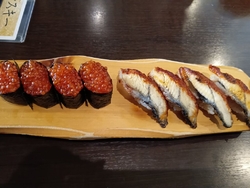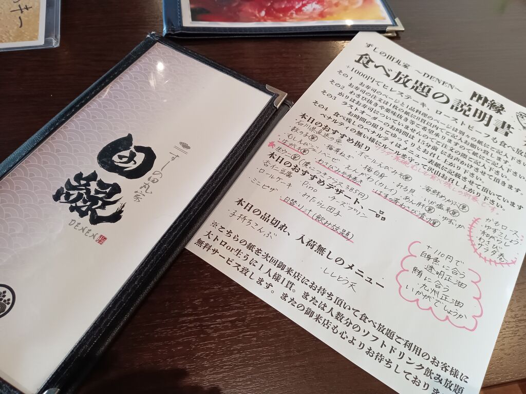 自宅から車で約3.5時間。息子と一緒に初来店です。息子がYouTube動画で見つけた寿司店で、食べ放題や宝石箱のような海鮮丼があるようでさっそく予約させて頂きました。レベルが高いと言うか敷居が高そうな店構えに見えました。60分一本勝負です。最初に画像にありますが茶碗蒸しとミニサラダが出てきます。待っている間に指定された付箋に寿司を8カンまで書いて注文します。寿司以外のサイドメニューや天ぷらなどは好きなだけ別の付箋に書いてテーブルの端にペタリと貼っておけばオッケーです。思った以上にシャリもネタもデカイので苦戦でしたが味は凄く良かったです。次回は旦那様とChallengeします。一人あたり4500円のコースでした。ごちそうさまでした。