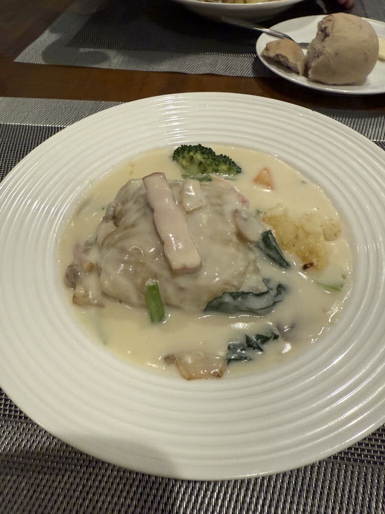 やっと行くことができました!キマグレイチバさんでもロールキャベツを食べて感動したのが忘れられなかったので、今回もホワイトソースのロールキャベツを注文。母はオリジナルを、。オリジナルとはなんぞや?とワクワクして待つと、デミとホワイトソースのいいとこ取り!どれか迷ったらオリジナルがオススメですね!!ロールキャベツはなかなかの大きさですが、柔らかく煮込まれていてしみじゅわです!雪の予報が出てるほど寒い日だったのであったかロールキャベツが美味しかったです!次はトッピングもしてみたいです!