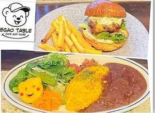 EGAO TABLE 10/13 Open上三川通りかかりにオープンの旗を見つけました。以前スタンダードベイカーズのパンを扱っていたEGAO MART.さんが、ランチ、カフェを楽しめるお店にリニューアルオープンしたようです。テイクアウトでカレーをいただきましたが、甘さの中にしっかりスパイシーさを感じ、とても美味しかったです。テイクアウトサラダもありシャカシャカしながら手軽にいただけました。スコーンやパンが可愛く並んでいたので購入してみましたが、アールグレイスコーンとくるくるウィンナーがとても美味しかったです。美味しかったので、連日カレーのテイクアウトをしにいきましたが、また新しいスイーツがあり、ココアのシフォンケーキは甘さ控えめ、程よく弾力があり、フワシュワッとこちらも最高でした!野菜もほぼ100円という安さ!新鮮で行くたびに野菜やスイーツは何があるかなぁと楽しみです^ ^次回はお店でゆっくりハンバーガーランチとスイーツを楽しませてもらいたいも思います!外はワンちゃん連れてランチが楽しめるようです^ ^