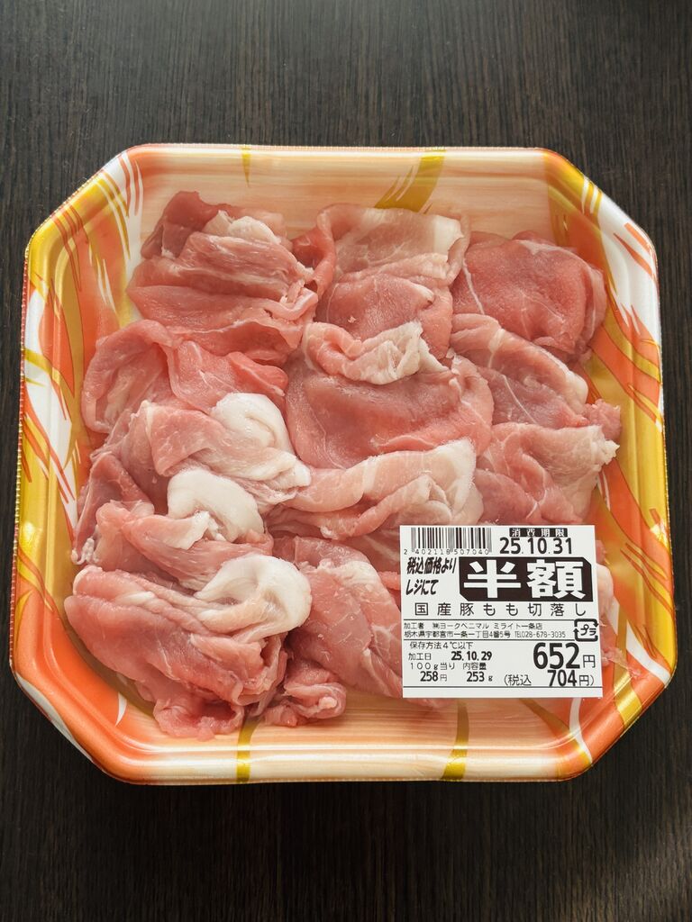 さのまる2525さん 宇都宮市 総合レベル49 ファン22 クチコミ ヨークベニマル ミライト一条店 宇都宮市/スーパーマーケット 21 1 夕食の食材調達で伺いました。なんと国産豚モモ切り落としが半額!!これは嬉しい(*^▽^*)また、先日こちらで購入した白髪ねぎのカットを炒め物やみそ汁に入れたら家族に好評だったのでリピートしました。今日も良いお買い物ができました~♪ 訪問日:2025.10.29 クチコミタグ #ご当地 #衝動買い #新鮮 #お宝 "ぐッ"ときた! 16人 さのまる2525さんのクチコミ一覧に戻る