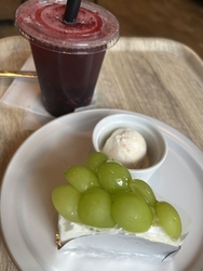 久々にケーキを食しに。暑かったので、ブルーベリーソーダとぶどうのレアチーズケーキを選択。うしロールといつも迷って季節限定にいってしまう。季節物のジェラートも美味しい。レアチーズはぶどうと相まってさっぱりなしっとり。ブルーベリーソーダはブルーベリーを食べながら飲んでる感じで濃い。結構甘め。パン販売が同じ敷地内の『あ・グッド』に移った為か以前より人の流れが落ち着いていた。カフェ内の一角に観光情報の冊子やパンフ等が多数置いてある。14時以降はカフェでパン販売になる(種類は少ない)。ぶどうパン購入(おいしい)。季節限定が豊富なので毎回行くのが楽しみ。