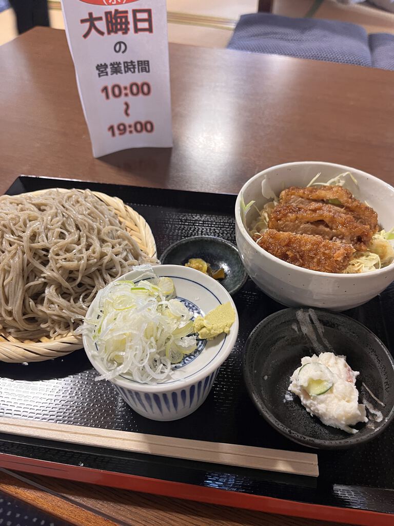 大晦日。とはいえ、蕎麦好きとしては年越しに限らず、いつでも蕎麦を食べたい自分。今日こそは食べずに終われない。年越しそばで福福福さんへ。昼過ぎに伺いましたが店内は満席で、少し待ちが出るほどの盛況ぶりでした。空腹だったので、ソースカツ丼セットを注文。蕎麦は大盛りで。ソースカツはサクサク感を残しつつ、甘辛いソースがしっかり絡んでいて美味い。ご飯が進みます。蕎麦は細打ちで喉越しが良く、繊細で清々しい味わい。するっと入っていく心地よさ。今年の締めくくりにふさわしい一杯でした。ごちそうさまでした。