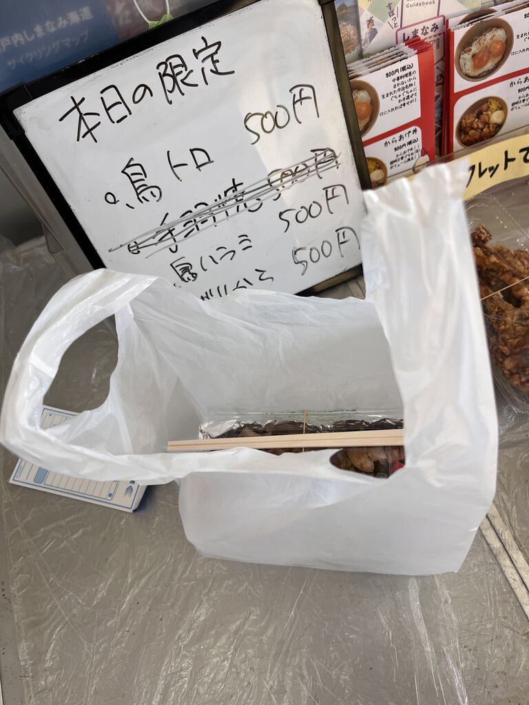 サイクリング帰りに、前から気になっていた今治やきとりの店「しまなみ」さんへ。近所で美味しい焼き鳥テイクアウトを探していたけど、なかなかピンと来る店がなくて、「そういえば今治やきとりがあったな」と思い出して立ち寄り。注文してから焼き始めるスタイルで、受け取りまで約20分。家に帰って、親鳥と砂ずりをいただきました。どちらも歯応えしっかりで好み。親鳥に付いてきた甘めのタレが特に好き。砂ずりは薄味だったので、家で追い塩してちょうど良い感じに。絶えず待っているお客さんもいて、なかなかの人気店。次はかわ、レバー、焼豚も気になるのでまた行こうと思います。