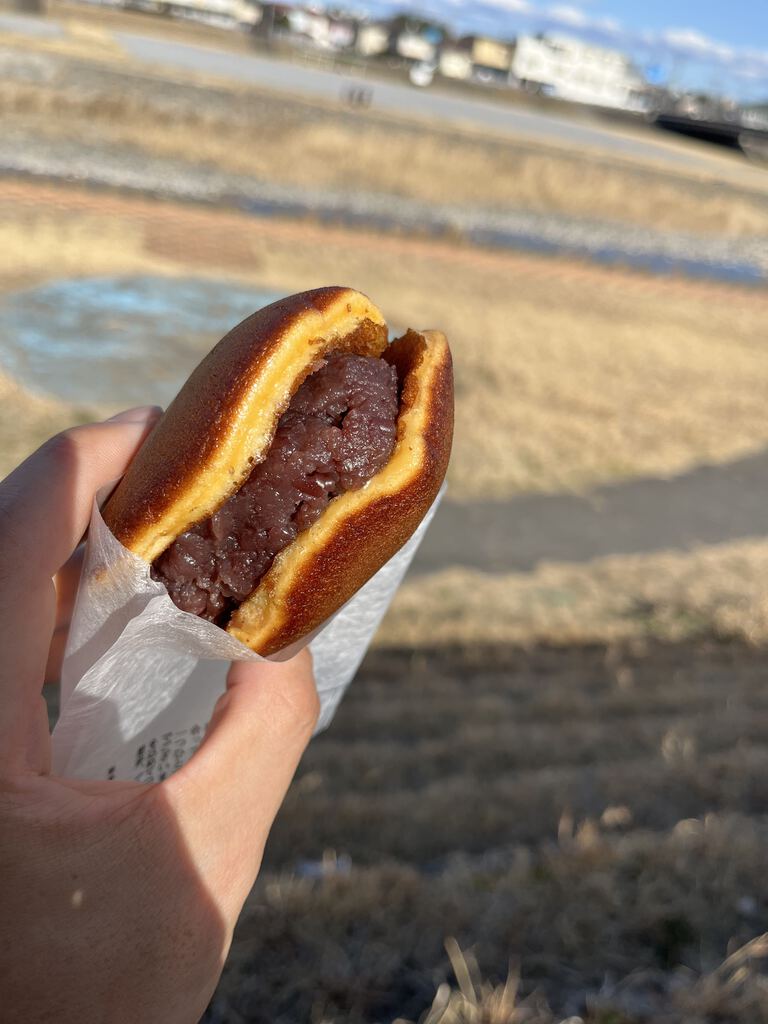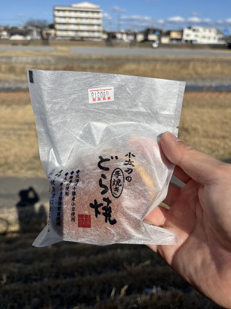 サイクリングしていたら、気づけば鹿沼まで。補給食が欲しくなり、以前から気になっていた和菓子処小太刀 さんへ寄ってみました。昼過ぎだったこともあり、くさ餅やいちご大福など、この時期の和菓子はすでに売り切れ。秀くりーむも気になりましたが、今回は「当店一位」のPOPに惹かれてどら焼きを購入。近くの 黒川河川敷 で休憩がてらいただきます。どら焼きは、あんこが“ごでっちり”(方言かな?)入っていて食べ応え十分。はちみつの香りがふわっと広がる生地に、甘さ控えめなあんこがよく合い、ぺろりと完食。糖分を補給して、北風に立ち向かいながら帰路へ。やっぱり甘いものを食べると元気が出ますね。