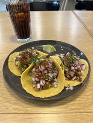 宇都宮でランチ。前々から気になっていたのに、なかなか行けていなかった店。候補に上がり続けていたその一軒に、今日はついに行ってやる!と訪れたのが Thunder Tacos。実はここ、以前BARだった頃に何度か来たことがある場所。入ってみると内装はほぼそのままだったようなおぼろげに覚えてる雰囲気。マスター一人のワンオペで、静かな声で「カウンターでもテーブルでもどうぞ」と案内される。店内は落ち着いた空気で、少し緊張感すらあるような雰囲気。なんとなくテーブル席へ。平日ランチはタコス3ピース。種類もいろいろあって悩む…。本当はいろいろ食べてみたいところだけど、第一印象で「これ絶対うまそう」と思ったビーフタコスを注文。しばらくしてやってきたタコス。これがタコスか。ライムを絞って、素手でどうぞとのこと。なるほど、フィンガーフード。具をこぼさないよう慎重に持って、ぱくり。あー、ドンタコス。柔らかいけどトウモロコシ粉の生地だから、なんとなくあの味の方向性。だけどフレッシュな野菜とソースがしっかり美味い。これはなるほど、タコスだ。気づけば3ピースはあっという間。コーラをぐいっと飲み干して、ごちそうさまでした。良い経験したなあ。うん、タコス理解したぜ。