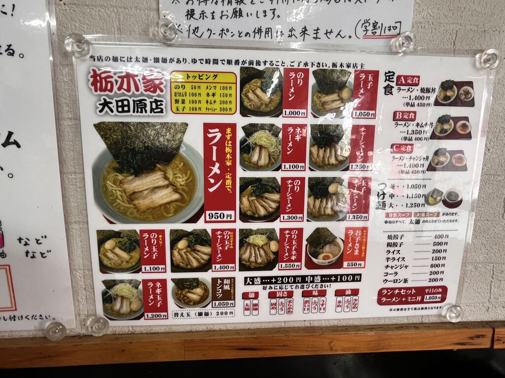 お昼時、大田原の461号線沿い。飲食店が立ち並ぶ激戦区で、特にラーメン屋の多さに毎回迷ってしまいます。自転車を走らせながらどこに入るか悩んでいると、ふと目に入ったのが「栃木家」さん。無性に食べたくなる家系ラーメン。ここに決定。今回はラーメン中盛を注文。麺の種類や硬さ、味の濃さを選べるのが家系の良いところで、太麺・他はすべて普通でオーダー。提供された一杯は、ほうれん草がしっかり乗っていて嬉しいビジュアル。スープは濃厚な醤油とんこつで、しっかり熱々。この“あつあつ感”がまた良い。まずはそのまま楽しみ、途中から卓上のカスタムへ。辛みそとにんにくを投入すると、さらにパンチのある味わいに昇華して最高です。気づけばスープまで完飲。満足度高い一杯でした。ごちそうさまでした!