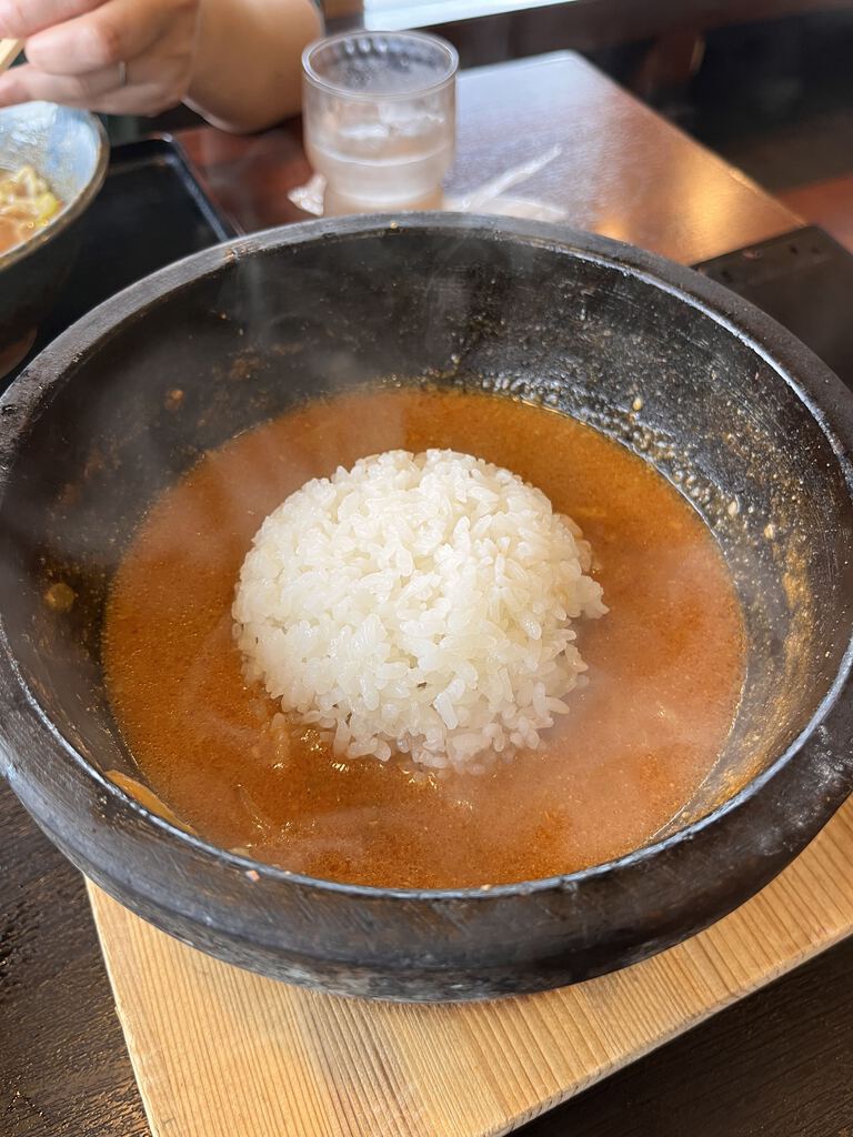 文化会館でのライブ終わりに訪問。土日通し営業なのがありがたいですね。「火山」は以前は複数店舗があったものの、現在は滝谷町の1店舗のみ。ちょっとした希少店です。注文は雷味噌らーめん。石焼の器に、目の前でスープを注いでくれるスタイルで、提供された瞬間からぐっつぐつの熱々。辛さと熱さが相まって、食べ進めるごとに汗がじんわり…いや、しっかり噴き出してきます。夢中で食べ進め、最後は残ったスープにライスを投入しておじやに。これがまた最高で、最後の一滴まで美味しく完食。満足度の高い一杯でした。1店舗しかないのがもったいない…また増えてくれたら嬉しいなと思います。