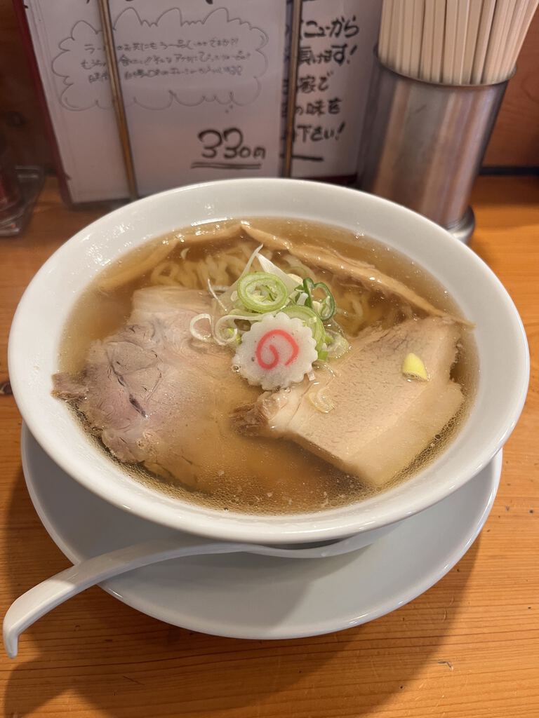 なんだか無性にラーメン気分。宇都宮でどこにしようか悩んだ末、市役所近くの佐野ラーメン店「暁商店」さんへ。普段は行列のできる人気店ですが、この日は早めの時間だったこともあり、すんなり入店。空腹だったので、ラーメンに加えてカレー丼も注文しました。ラーメンは、大ぶりでタイプの異なる2種類のチャーシューが目を引く一杯。麺は佐野ラーメンらしいのちぢれ麺で、ぷりっとした食感とコシが心地いい。スープはほんのり生姜が香り、やさしさの中にキレもあり、つい飲み干したくなる味わいです。カレー丼にもチャーシューが入っていて、こちらもやさしい旨みがじんわり。ラーメンとの相性も良く、気づけば夢中で完食していました。餃子も人気とのことなので、次回はぜひそちらも試してみたい。ごちそうさまでした。