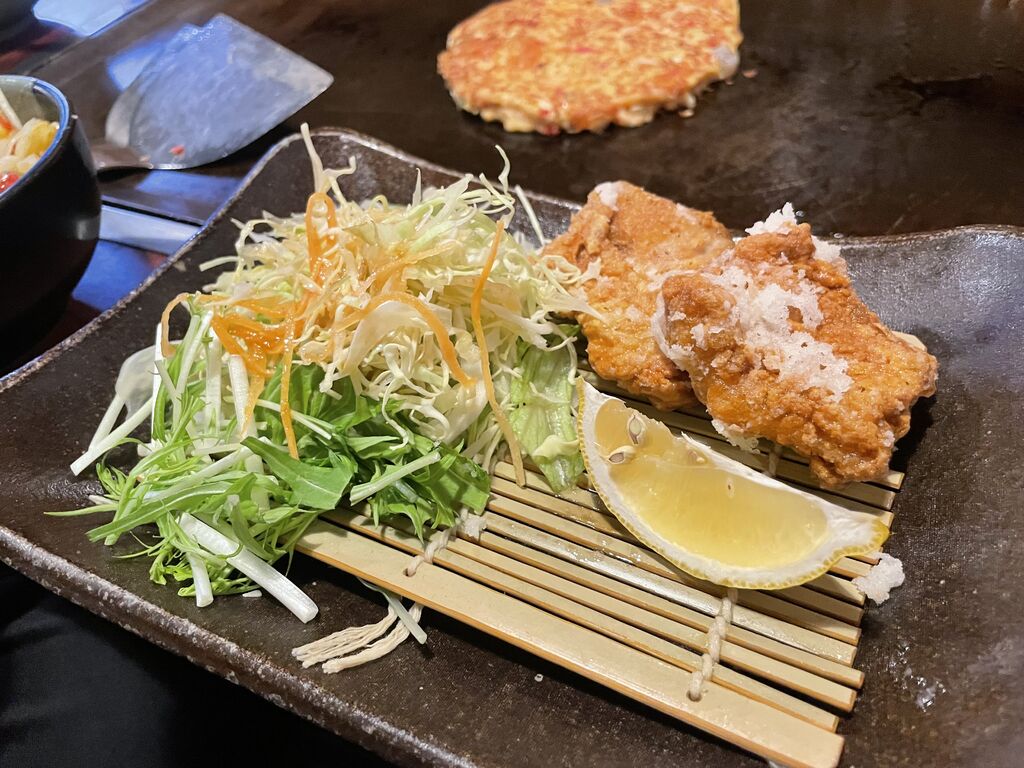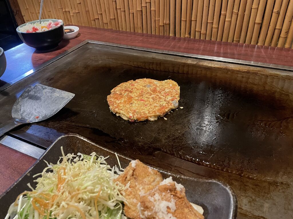 粉物が食べたくなり、近場で検索して出てきて良さそうだったので予約し来店しました。一週間前に土曜日の18時からで予約。当日は駐車場はスムーズに入れましたが、店内は賑わっていました。店主をはじめ、お店の方は皆様とても親しみやすい感じでした。頼んだものは以下です。・明太チーズ玉(980円)・餃子玉(880円)・豚キムチ玉(880円)・鳥の唐揚げ(700円)・ホタテバター焼き(880円)・ソフトドリンク(280〜480円)×5お好み焼きはボリュームあり、コスパ良いなと思いました。ドリンクも安い!餃子玉は、餃子が入ってるわけではなく、でも食べると「え、餃子だ…!!」となる不思議な感覚でした!鳥の唐揚げが想像以上に美味しかったです。(写真は食べかけです。唐揚げは4個で提供されます!)