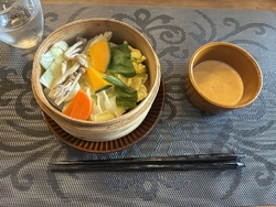 気になっていたグルテンフリーのお店です。HIKARUスペシャルセットを注文しました。お米のパスタ「お肉を味わうボロネーゼ」。デザートは「とまらないチーズケーキ」と「米粉のシフォンケーキ」。ドリンクは「コーヒー」を選択しました。これに、前菜、スープが付きます。前菜には野菜のせいろ蒸し、米粉のフォカッチャ、米粉のごまパンが出てきました。玄米粉で作られたパスタは初めて食べたのですが、もちもちしていてソースによく絡んで美味しかったです。全て美味しかったのですが、特にデザートのとまらないチーズケーキが、濃厚なのにあっさりしていて驚きの美味しさでした♡岩塩や黒胡椒にもよく合い、新たな発見でした。また伺いたいお店です!