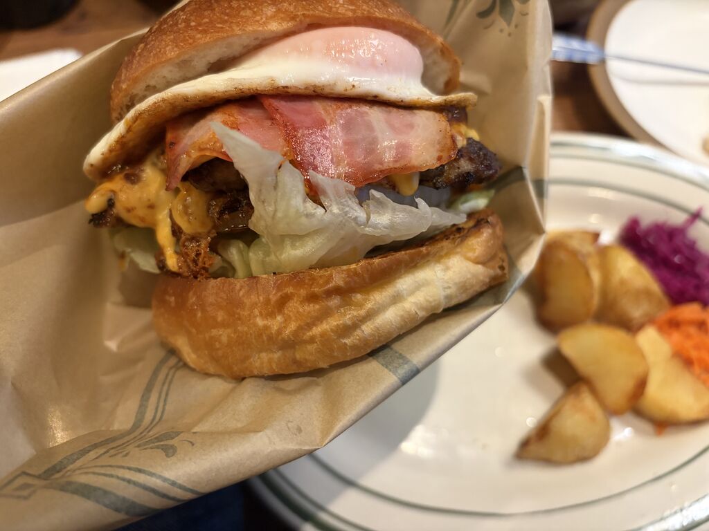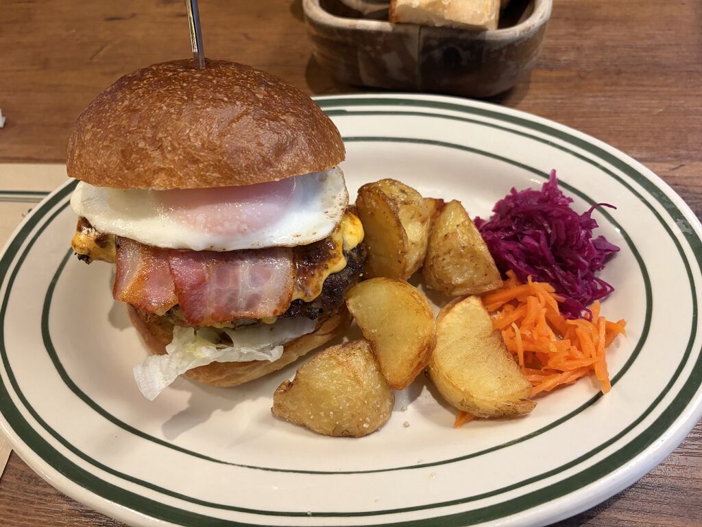 25にこ25さん 宇都宮市 総合レベル46 ファン20 クチコミ Restaurant PENNY LANE 宇都宮市/洋食 111 76 「ペニーズバーガー」をいただきました。かなり大きく分厚いハンバーガーにびっくり。目玉焼き、ベーコン、パティ、チェダーチーズ、レタス玉ねぎ、ミートソースと具沢山です。全ての具材がよくあっていて最高に美味しく夢中で食べてしまいました。付け合わせのフライドポテトや酸味の効いた人参ラペも口がすっきりして味変になり美味しかったです。 訪問日:2026.04.21 "ぐッ"ときた! 12人 25にこ25さんのクチコミ一覧に戻る