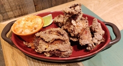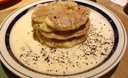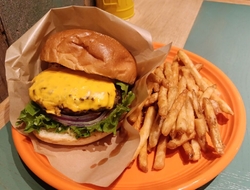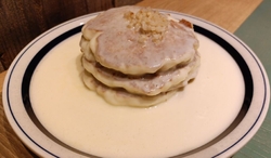 やっと訪問出来た~(笑)OPEN当時からずっと気になっていて店の前を通るたびに外まで並んでいた日々。ダメ元で行ってみよ~って事になりGO!運良く駐車場も空いていて入店~♫3組待ち位で通されました。パンケーキをメインで食べたかったので【マカダミアナッツパンケーキ】と【モチコチキン】をチョイス!パンケーキのソースは冷たいソースと温かいソースが選べて私は温かいソースをオーダー♫届いた瞬間の感想が、パンケーキがマカダミアクリームソースのお風呂に入ってるみたい(笑)と率直に思ってしまいました。パンケーキは軽い食感なので濃厚なソースとクランチマカダミアの食感が相性いい~(笑)コーヒー豆を砕いた物&ハニーシロップをかけて味変を楽しめるので最後まで飽きる事なく、ソースにパンケーキをヒタヒタと染み込ませながら食べちゃいました(ૢ˃ꌂ˂⁎)チキンはロコの定番メニューらしく(もち粉)をまぶして揚げてあり外はカリカリ、中はジューシーでやみつきになるチキン(笑)もう一品は【コズナチーズバーガー】何ともボリーミ~♫野菜たっぷりで牛肉100%、パティにチーズがとろけている姿に惹き付けられてしまい、一口パクリ!甘めのソースが全体に合っていて食欲そそる~。気づいたら彼は完食していました~(笑)ポテトはカリカリ、パリパリ食感。ドリンクメニューも豊富で選びきれなぁ~い!次は他のパンケーキを食べてみたいと決定しました٩(ˊᗜˋ*)و