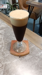 ぶらりと休憩デザート時間(笑)店内に入るとレトロ感&オシャレ感♪壁にあったケーキメニューが気になり《キャラメルバナナケーキ》に決定!飲み物は悩み…飲んだ事のない《エスプレッソ(シェケラート、キャラメル) 》ん?シェケラート?聞いた事なぁ~い(笑)店主に説明され興味が湧き決定!濃いめのエスプレッソとキャラメルを一緒にシェーカーでシェイクして作るみたいでワクワク待ってたら店主が目の前でシェイクしてグラスに注いでくれましたぁ~(ૢ˃ꌂ˂⁎)クリーミーで飲みやすく口当たりの良い泡がエスプレッソの風味と溶け合って大人な味~(笑)時間が経つとエスプレッソが沈んで苦さが増すみたいで、お好みで追加のキャラメルを出してくれました。自分で甘さを調整出来るので甘党の私でもOK~♪ケーキは生バナナとバナナチップの組み合わせ。食感も楽しめる。見た目はずっしりしたケーキだけど口に入れるとそんなに重くなく軽やかな味~(笑)生クリームは甘さ控えめなのでバナナの味を生かして全体のバランスが最高(笑)添えてあるアイスを一緒に食べながらと文句なしでした(笑)とても居心地良く長居をしてしまった一時でした(*^^*)