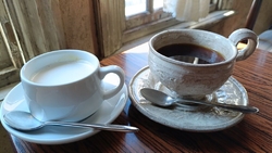 昭和にタイムスリップしたかのようなレンガ造りの建物♪少し急な階段を登り、2階の窓際でデザートタイム~《かぼちゃプリン》と《珈琲(オリジナルブレンド)》を注文しました(*^^*)この日のかぼちゃプリンは失敗したらしく空気が入ってしまった!との事だったけど、口に入れた食感は全然気にならなく なめらかで甘すぎず、優しいかぼちゃの風味を感じました(*^^*)福伝珈琲店という店のオリジナルブレンドは、浅煎りで軽い感じて飲みやすかったです٩(ˊᗜˋ*)و途中から甘めで飲みたくなり砂糖を入れようとしたらドバーって入ってしまい最後はカップの底に砂糖が溜まっていて、せっかくのオリジナルブレンド珈琲味を台無しにしてしまったぁ~( ߹꒳߹ )とても居心地のいい空間だったのでマッタリ長居してしまいましたꉂꉂ(ᵔᗜᵔ*)