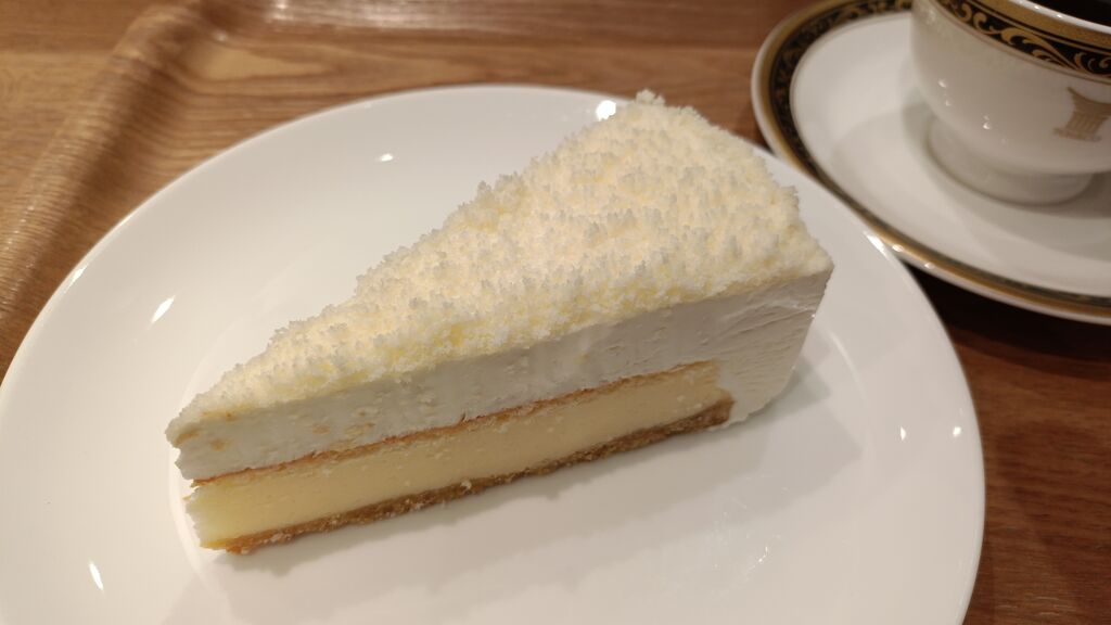 食後のデザートを求め٩(ˊᗜˋ*)و GO~【北海道チーズの2層ケーキ】と【ブレンドコーヒー】のケーキセットに決定♪カウンター席がタイミング良く空いたので着席。ハンドドリップで丁寧にコーヒーを淹れてる店員さんを目の前で眺められる席であってラッキー(笑)北海道産のチーズを使用した、ベイクドタイプとムースタイプの2つの食感を口の中で味わえる贅沢チーズケーキ٩(ˊᗜˋ*)وあっさりした味わいでした!酸味が少なく 癖がなく 飲みやすいコーヒーはケーキとの相性バッチリでした~♪