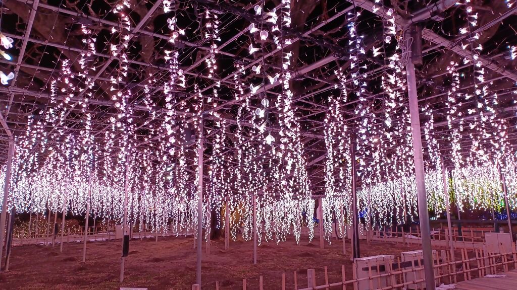 ずっと来たかった足利フラワーパークのイルミネーション(♡´艸`)やっと来れたぁ~(笑)日没まで少し車で待ってから=͟͟͞͞( ᐕ)੭ GoGo‼️【イルミネーション日本一】とだけあって目の前に広がる光の量に感動が止まらない時間でした。プロジェクションマッピングや映像演出など何度も切り替わって、色んな景色を楽しめるので 足を止めてはワクワク感動~の繰り返しでテンション上がる(٩Üو)↑【奇跡の大藤】では香りと光で楽しめて藤の香りに心が癒され想像以上の美しさで、思わず見入ってしまいました。同様に【光のバラ園】でも香り漂う見晴台から見渡せる光のバラ一面が凄く綺麗でした(*^^*)バラの香りに酔ってしまったぁ~【光のピラミッド】は浮いているかの様にも見えて色んな角度から見ては楽しめて幻想的~。園内の全てが光に包まれていて散策しては感動の繰り返し(ૢ˃ꌂ˂⁎)凄~く寒かったので温かい飲み物を購入し休み休み園内を回って、帰りはお土産を買ってもらっちゃったぁ~(笑)気晴らしも出来て楽しかった(*´︶`*)♡Thanks!♡︎
