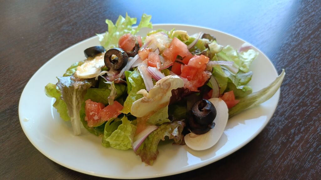 ピザが食べたぁ~い(笑)私のワガママを聞いて連れて行ってもらったぁ~(♡´艸`)ランチメニューのメインにオススメの【マルゲリータ】を選びAセット【ランチサラダ+セットドリンク】にしましたぁ~♪ピザ生地がモチモチしていて最高~(ૢ˃ꌂ˂⁎)耳の部分の焦げ目が香ばしくてソースなしでも小麦の味を楽しめて満足!出来たては熱々チーズとろ〜りでテンション上がる~(笑)濃いめで酸味のあるトマトソースにフレッシュなバジルの香りが引き立っていてシンプルだけど本格的なピザを味わえました٩( *˙0˙*)۶オススメ!何種類もの野菜がミックスされていたサラダはオリーブがアクセントになっていた。サッパリしたドレッシングは個人的に好きな味で野菜の旨みを邪魔する事なく素材を味わえる贅沢なサラダでした(✿´༥`✿)