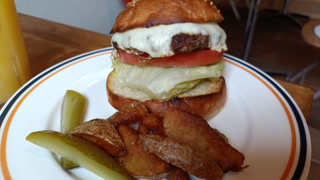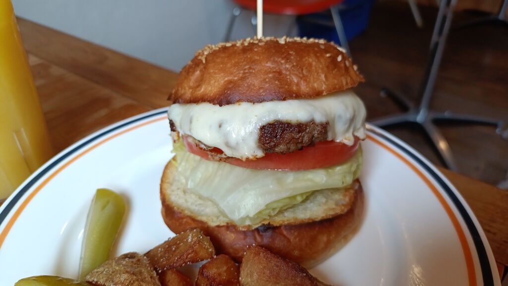 久しぶりのハンバーガーランチ♪3種類のチーズから選べる【チューズチーズバーガー】にドリンクSETをチョイス~٩(ˊᗜˋ*)و肉肉しい、牛肉の旨みをたっぷり味わえる絶品バーガー!野菜は新鮮でシャキシャキレタスに、フレッシュトマト~。チーズはモッツァレラを選び食べ応え十分(*´༥` *)ふっくら香ばしいバンズは焼いてあって外はカリッと中はモチっと食感。バンズがしっかりしているのでボリューム感あるハンバーガーでも食べやすかったです(笑)塩がかかったポテトは甘みのあるじゃがいもでホクホクしていて、塩味と甘味の不思議な味がクセになっちゃいました(笑)古着の販売もしている店内は雰囲気が良くオシャレ感もあり٩( *˙0˙*)۶オススメ!お腹いっぱいランチ♪ごちそうさまでした( ꈍᴗꈍ)