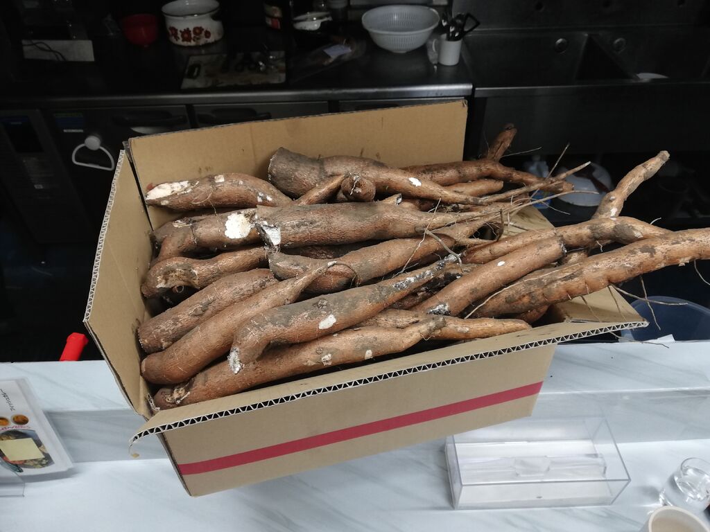 今回、4度目の来店です!こちらに伺うまでスリランカ料理は未体験でしたので、私的には「インド料理のような感じなのだろうか?まぁ同じようなモノかも…?」と思いつつ頂きましたが…インド料理とは「似て非なるもの」でした。根本的に違うもので、新たな発見をした気持ちで嬉しく思いました!ひと言で言えば「身体に優しい味」ですが、もちろん辛味も調整してもらえるので、パンチを効かせたい方にもオススメします。ご主人がおひとりで切り盛りしていますが、日本語が堪能ですので食材について聞きたいことがあれば丁寧に何でも教えてくれますよ!もしかしたら「スリランカ料理は興味あるけれど…なんとなく行きづらいなぁ」とか「食べ慣れてないから…1人だとちょっと…」と思う方々もいるかもしれませんが、たぶん最初だけですよ!ちょっと興味本位でも立ち寄る価値のあるお店だと思います。1枚目の画像は「イエローライス&カレー」でカレーの具はエビ。プレートの中央にライス。その上に「カットレット…コロッケ的なもの」その下が「パパド」時計回りに「カボチャ…自家栽培」「ゴーヤ…自家栽培」「だいこん…自家栽培」「ゴツコラ…自家栽培」で、1070円でした。カップのセイロンティはサービスです!2枚目の画像は「キャッサバ…自家栽培」で、この日に取れたて…とのこと。10数キロありましたが、最初見たときに「コレな~に?さつまいも?」と聞いてしまった自分がちょっと恥ずかしかった…。