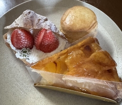JR宇都宮駅改札を出てすぐ、よく行列が出来ていて調べたら日光の有名なパーラーとのこと。アフタヌーンティーが人気のようですが今回はケーキ等をテイクアウトしました。クロワッサンに生クリームとイチゴを挟んだイチゴサンド(450円)、かなりの重さもある立派なアップルパイ(600円)、スコーン(350円)全て税抜の価格です。イチゴサンドは甘さ控えめだけどコクがある生クリームとクロワッサンのバターの香りがマッチして最高でした。この生クリームのお味のケーキ屋さんはきっと全部美味しいだろうなと思わせます。アップルパイもスコーンもバターの風味が良くとても美味しかったです。店内のアフタヌーンティー注文の女性客の皆さんとても幸せそうだったので、次回はチャレンジしたいです。