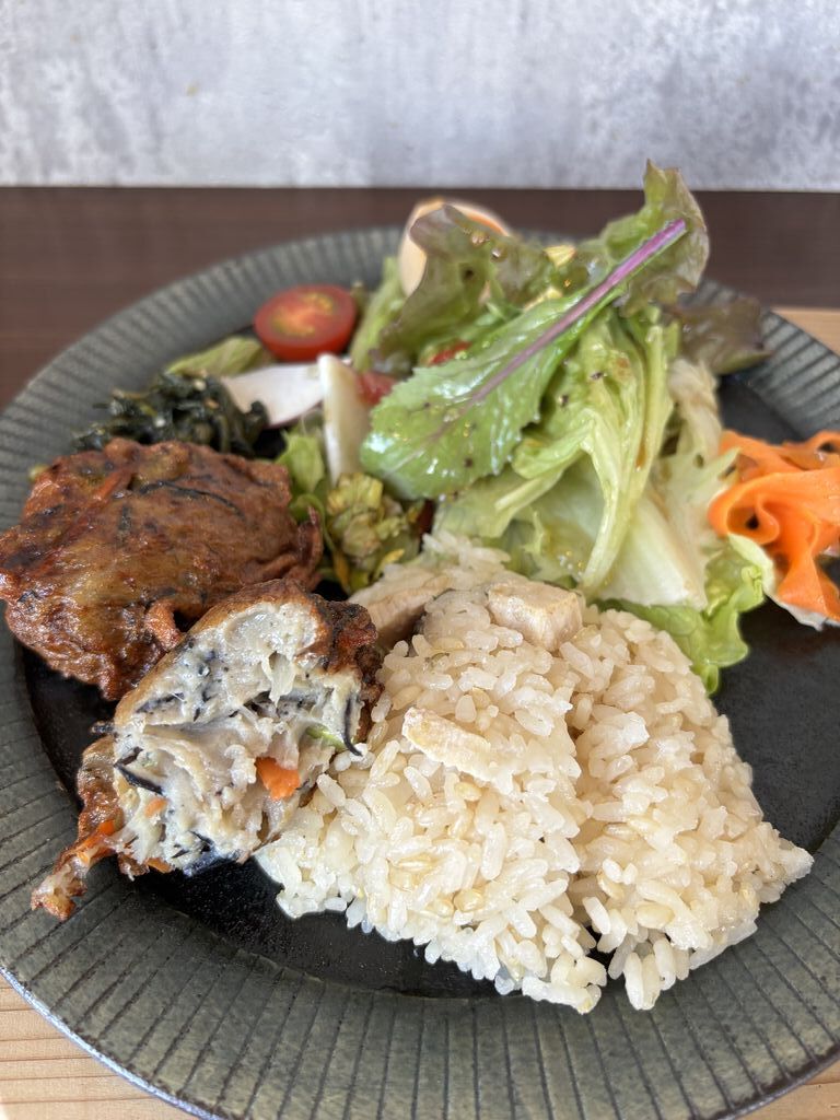 友達から勧められてお伺い致しました 外観から内装にコースターのニャンコがかわいい 女子ウケ間違いなし ランチは2種類からチョイス しかも無添加 無農薬栽培 オーガニックとの事 無添加揚げたてさつま揚げランチはさつま揚げが熱々の揚げたて 野菜もドレッシングも美味しい デザートにミニチーズケーキをオーダー すぐに食べきってしまったわ 別に単品でオーナーおすすめのタルト・タタンを追加 リンゴがしっとりして美味しい 初めてのデザートに感激 もうちょっとデザートが食べたいなんて思い いちごと桜のミルクレープも追加 少し半解凍部分があってヤバイ美味しさ シナフェンさん オーナーさんのオーダータイミングから説明の丁寧さ いい距離感 全てが正解 間違いないってこういう事なんだなって思いました ランチは週替わり デザートも毎日変更するそうなので また近いうちにお伺いしたいと思ってます 本日は満足に感謝に美味しいランチになりましたよ ご馳走様でした