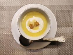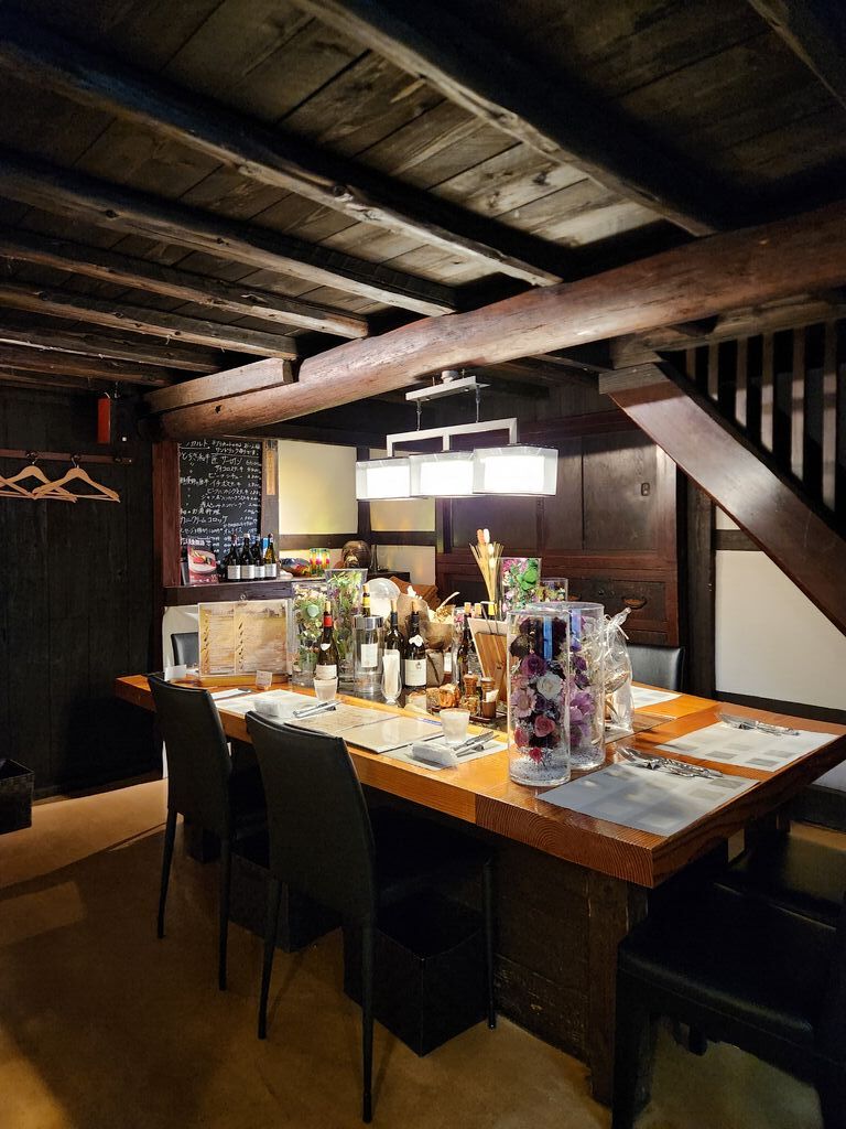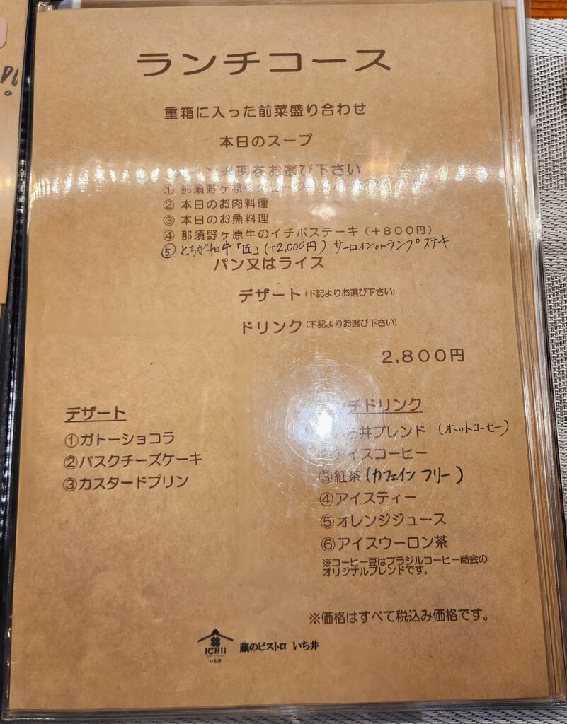 今日も行ってきました、栃木市の蔵のビストロ いち井。前日に11:30ランチに予約し訪問です。到着すると3台の車が駐車していました。間もなく蔵の引戸が開きカウンター席に着席です。今日はまだ食べてなかった、那須野ケ原牛のビーフハンバーグステーキ2,800円でドリンクはコーヒー、デザートはカスタードプリンをお願いしました。前菜のお重の手前の小鉢は那須野ケ原牛の牛筋煮込みでした。スープは自家製コーンポタージュは肌寒いこんな日には暖まります。メインは那須野ケ原牛のビーフハンバーグステーキ(ミディアムレアー)です。今までのハンバーグのイメージを変える味わいで、デミグラスソースはそれを邪魔しない優しい味です。うぅんーいいですね!!続いてデザートとコーヒーでくつろぎながら、ママさんに野菜フレンチのお店を紹介してきました。満足感のあるランチでした。
