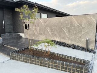 遠方からの引越しに伴い、土地勘のない中で外構工事をお願いしましたが、福田土木さんに決めて本当に良かったです。最初の打ち合わせで提示いただいたパース画像がとにかくおしゃれで、こちらの想像を超える提案に一気に心が掴まれました。その後の打ち合わせでも、細かな要望を一つひとつ形にしてくださるだけでなく、予算を抑えるための具体的なアドバイスもいただけて非常に助かりました。特に気に入っているのは、曲線で仕上げていただいた玄関アプローチです。家のイメージにぴったりで、通るたびにとても満足しています。また、愛犬をモチーフにした肉球をデザインしていただいたのですが、いかにもという感じではなく「隠れ肉球」のようにさりげなく入っており、その遊び心ある仕上がりに感激しています。工事をしてくださった職人さんもとても丁寧な仕事ぶりでした。作業中、息子がじっと見ていると優しく手を振ってくださり、息子もとても喜んでいました。追加の依頼にも迅速に対応いただき、相談を重ねながら理想の外構を完成させることができました。今後また何かあればまず福田土木さんに相談したいですし、知人にも自信を持って勧められる最高の会社さんです。