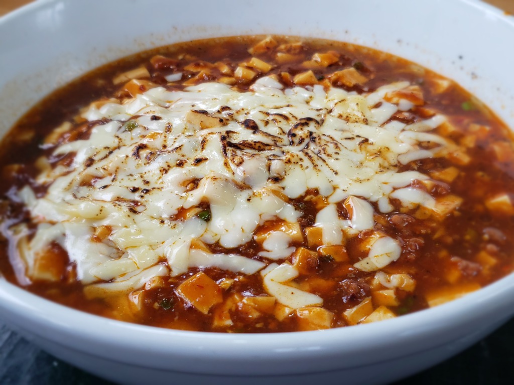 本日の日替り とろけるチーズ麻婆豆腐麺750円お昼をいただきました(^o^)肌寒い今日のお昼は、熱々とろとろチーズがのった旨辛で麻婆豆腐麺o(^o^)o本日の日替りとろけるチーズ麻婆豆腐麺(^○^)うまかっぺよ☆ (訪問:2024/10/08)