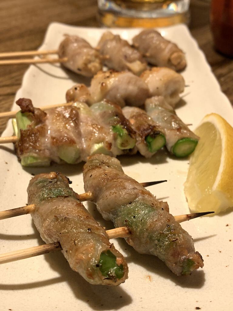 飲み会でお邪魔しました。居酒屋さんとかで焼き鳥をいただくことは これまで何度もあったけど、「串焼き屋さん」に入ったのは初めて。私達はテーブル席のある2階に案内されましたが、1階はカウンター席が並んでいて、お一人様でも利用しやすそうです。串焼きは、ミニトマトや青ネギ、蓮根等の野菜をお肉で巻いたもの、チーズの入ったものなど、色々あって、美味しかったです。 (訪問:2023/04/10)