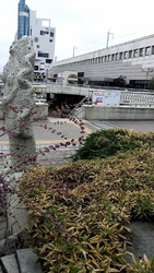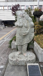 JR宇都宮駅西口ペデストリアンデッキ上にある餃子をモチーフとした石像です。市内北西部の大谷地区で採れる石材でできています。“餃子”と“大谷石“は、栃木県民だけではなく、もはや全国レベルでの認知度ですね。この餃子像の前で記念写真を撮る(観光客らしき)人を多く見かけるのも当然だと思います。 (訪問:2024/04/13)