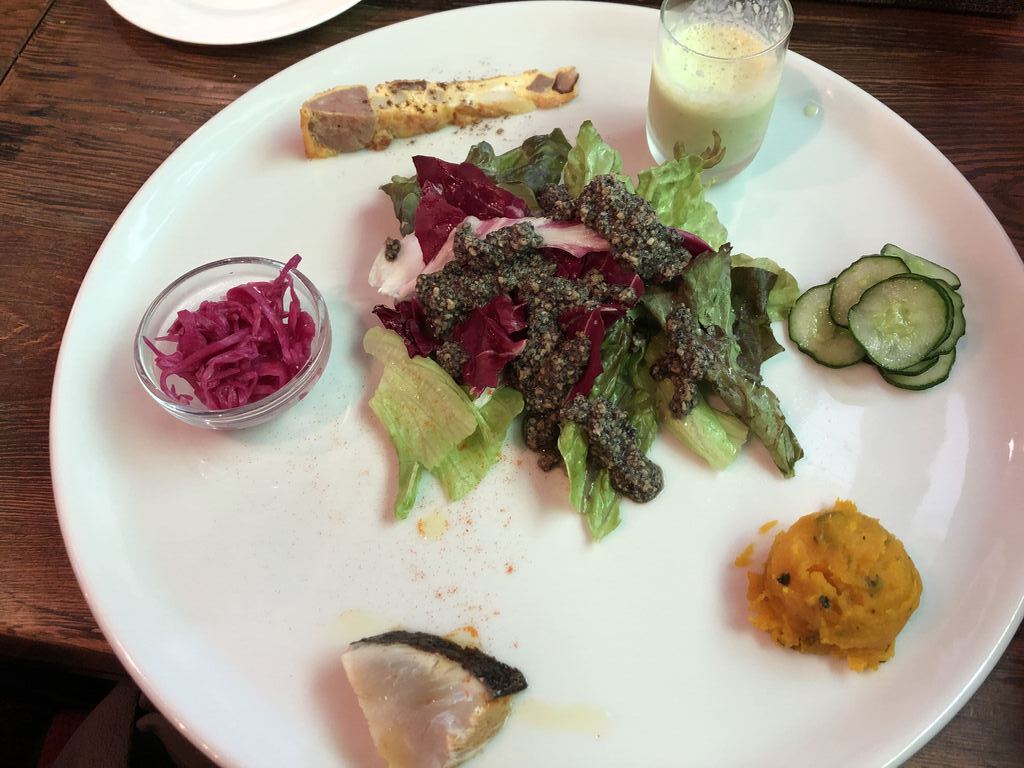 誕生日に予約なしでお店に行きました。2985円のランチコースでお祝いしました。最初に焼きたてのパンがでて、ワンプレートの豪華な前菜、そばのパスタ、ガレット、コーヒー、ケーキでした。普段の食事に比べとても豪華で美味しい食事を食べられてとても幸せです。 (訪問:2023/03/04)