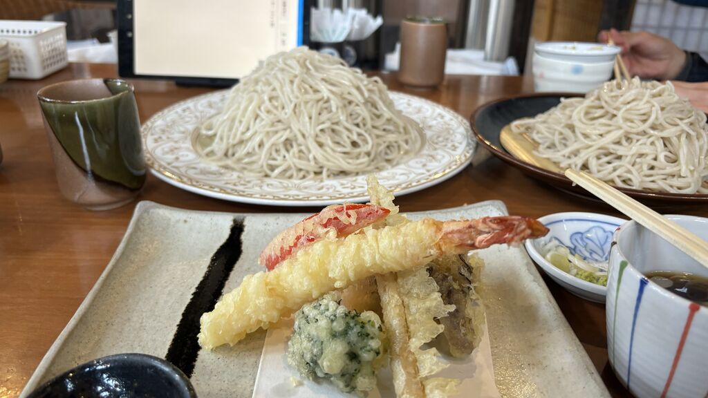 昼頃から雪になる予報、今日はワンコ連れでランチ、五色庵さんは店内でワンコOK!なんて貴重なお店〜^_^店内は古民家で素敵な作り、入口スペースが全てワンコと一緒にいただける場所になってます。しかも、素敵な椅子にワンコのカフェマットまで敷いてあり、我が家のワンコもそちらで我が家のようにリラックス(o^^o)とても活気のあるお店ですね♪家族4人、メンズ3人は天ざるそば大盛り、私は普通の冷そば冷を注文。こりゃまたびっくり、大盛りがすごいっ、普通盛りでも今まで注文した他の蕎麦屋さんの大盛り⁈でしょ、という盛りでした(^。^)大盛りは言わずもがな、写真見てみてくださいね(o^^o)ふぅ、満腹満腹大満足!もちろん天ぷらも揚げたてで美味しいかったです!またワンコ連れて伺います^ - ^ (訪問:2024/03/23)