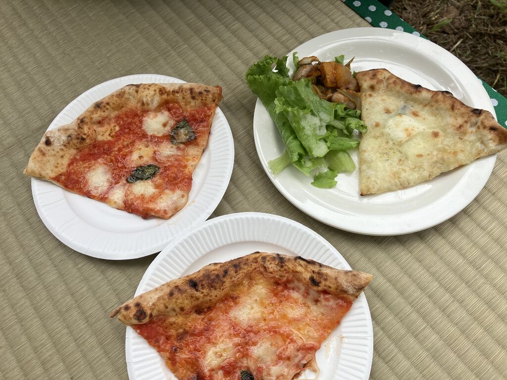 9月最後の日曜日、山あげ会館で開催されていたナカマルシェでピザをいただきました。美味しそうなピザが何種類もあって選びきれず、結局全種類いただくことに。カットでの販売なので、色んな種類がいただけました。まずは定番の「マルゲリータ」から。もっちりとした生地に、爽やかなトマトソース、チーズの組合せはまさに鉄板!続いていただいた「いちじくと生ハム」は、いちじくのとろ~っとした食感と優しい甘さに、生ハムの塩味がぴったり。「さつまいもとツナ」は、ほくほく食感のおいもとツナのオイルが絶妙にマッチ。「季節野菜とアンチョビ」は、ほんとにお野菜もりもりで食べ応えあります。高温で焼き上げられた野菜の甘みがたまりません。帰りには、お土産用のマルゲリータを購入。帰宅後、息子さんのお昼ごはんにと温めて出してあげたところ、「手が汚れる」「あっちい」と文句を言いながらも見事に完食。かなりの大きさでしたが、好物はぺろりです。イベントでは、普段いただけない特別メニューがいただけるので嬉しいです。美味しい幸せをありがとうございました。ごちそうさまでした~。 (訪問:2025/09/28)